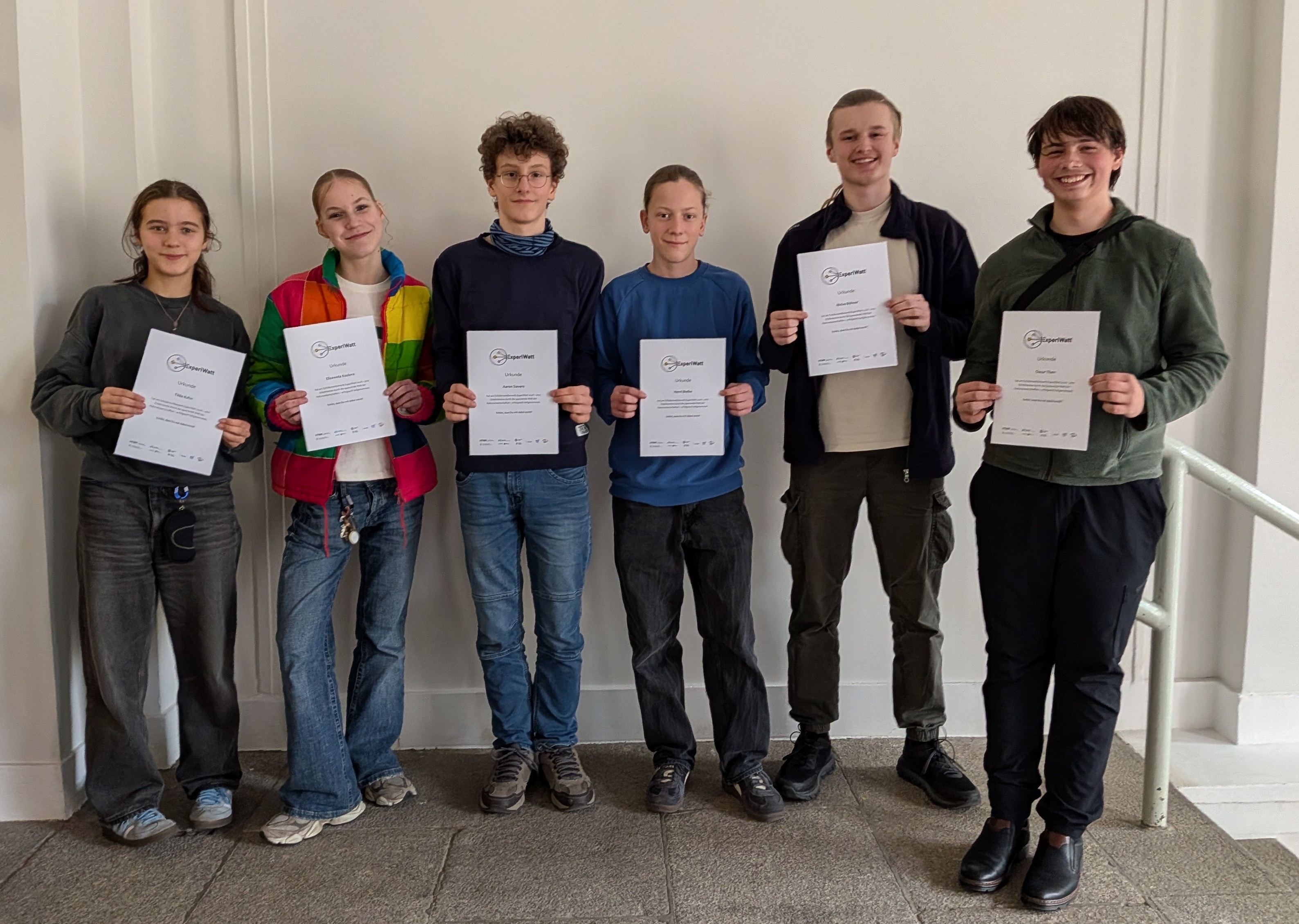 Vom 2. bis 13. März 2026 nahm unser Schulteam aus den Klassen 9b und 9c am naturwissenschaftlichen Wettbewerb ExperiWatt teil. Bei diesem Wettbewerb dreht sich alles um Energie - die Teilnehmer experimentieren an der HTWK, dem Helmholtz-Zentrum für Umweltforschung, der Universität Leipzig, dem Max-Planck-Institut für Kognitions- & Neurowissenschaften, der VDI GaraGe und der Inspirata unter anderem an Solarenergie und brennbarem Eis, konstruieren Windräder und erforschen die Energie des Denkens.